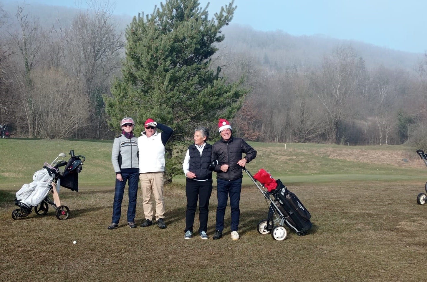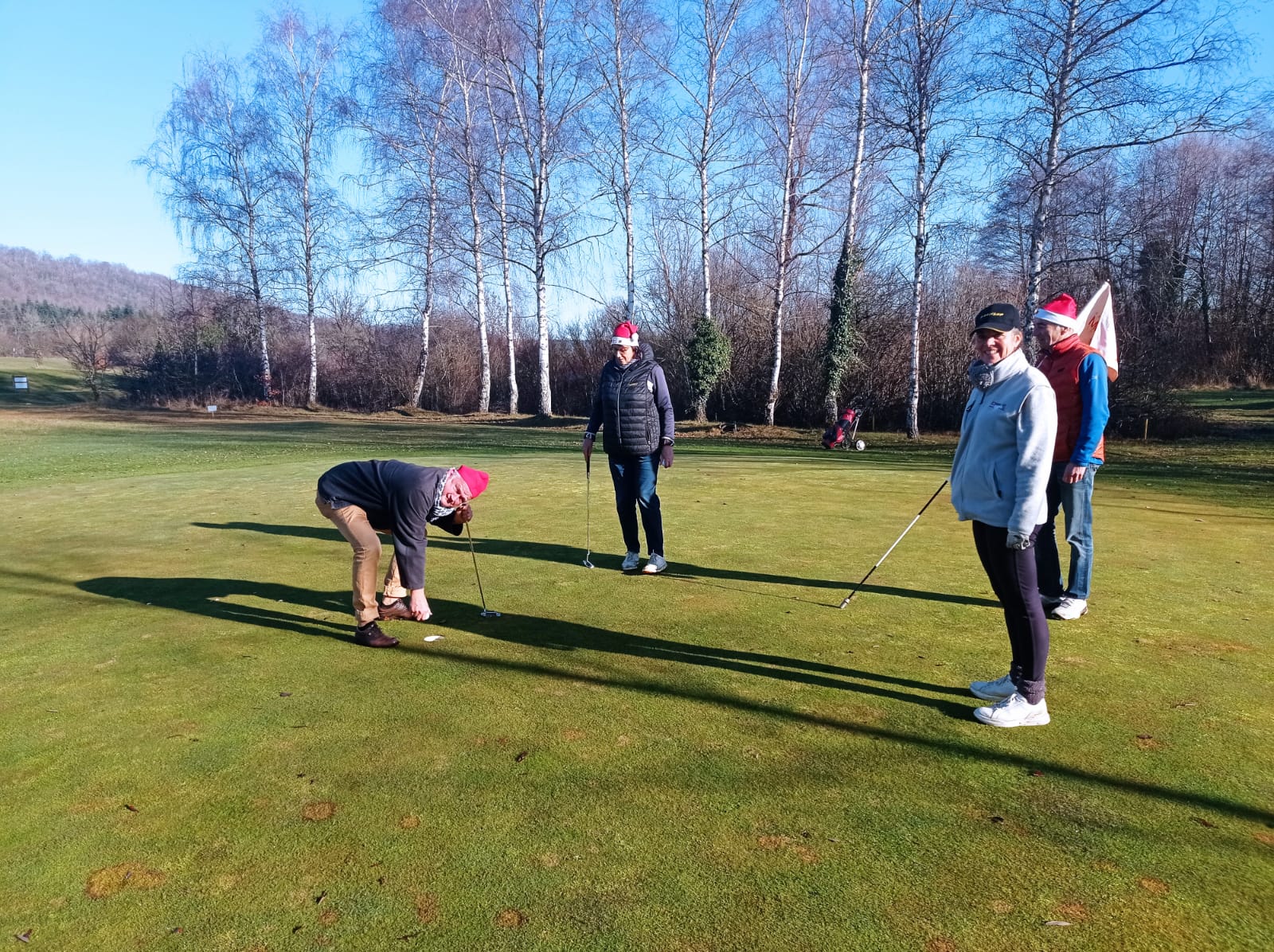 En parallèle de la finale les 22 joueurs présents ont joué dans une formule Foursome qui a opposé les pères Noël à ses lutins. (Petit rappel sur le Foursome : Les joueurs jouent alternativement la même balle jusqu’à la fin du trou. Un joueur de l’équipe débutera sur les trous pairs, l’autre sur les trous impairs) Les pères Noël ont battu sans appel les lutins!