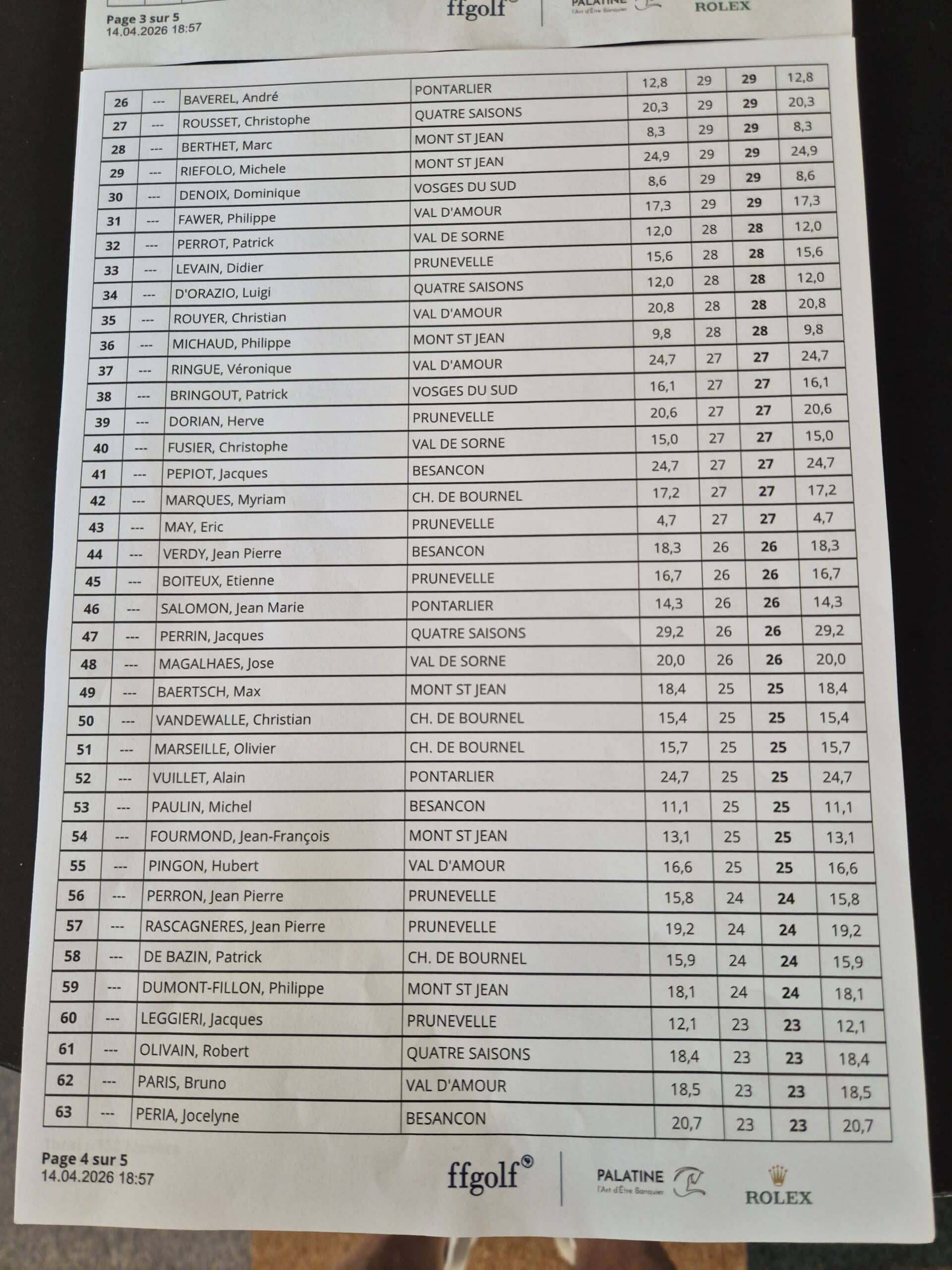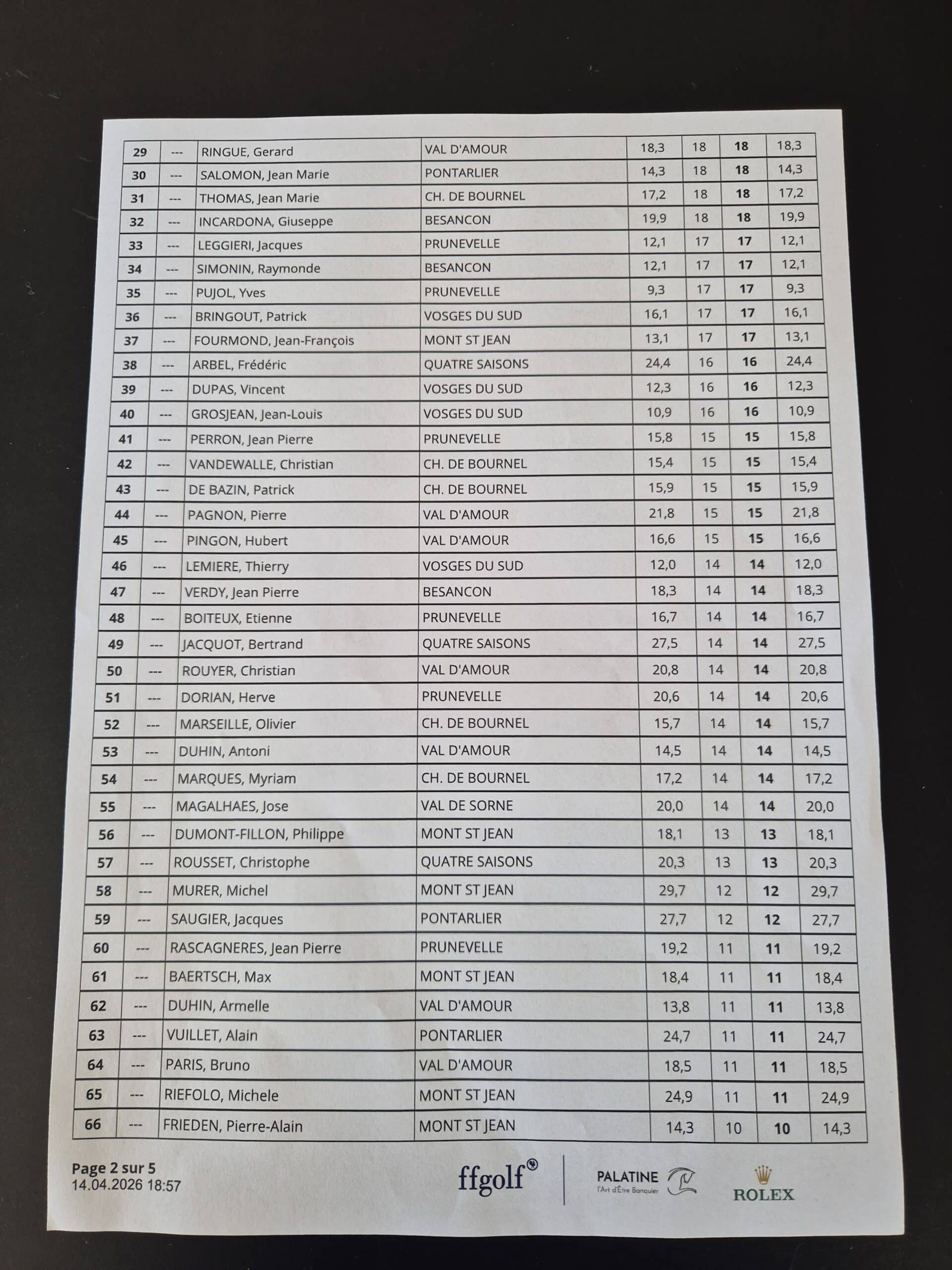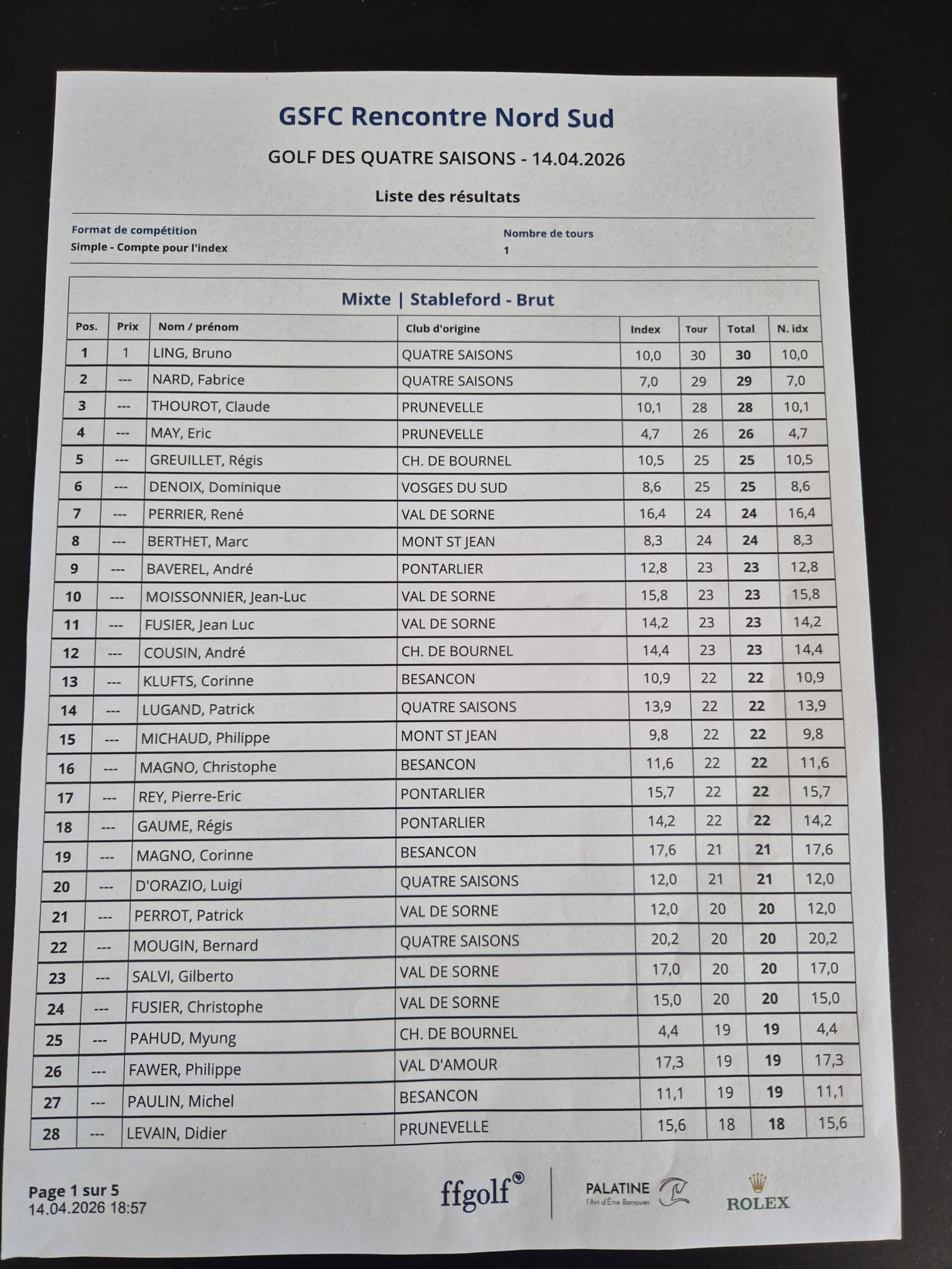 Au niveau des résultats le Sud a enfin gagné contre le Nord de 4 petits points sur 30 cartes (en brut et en net).