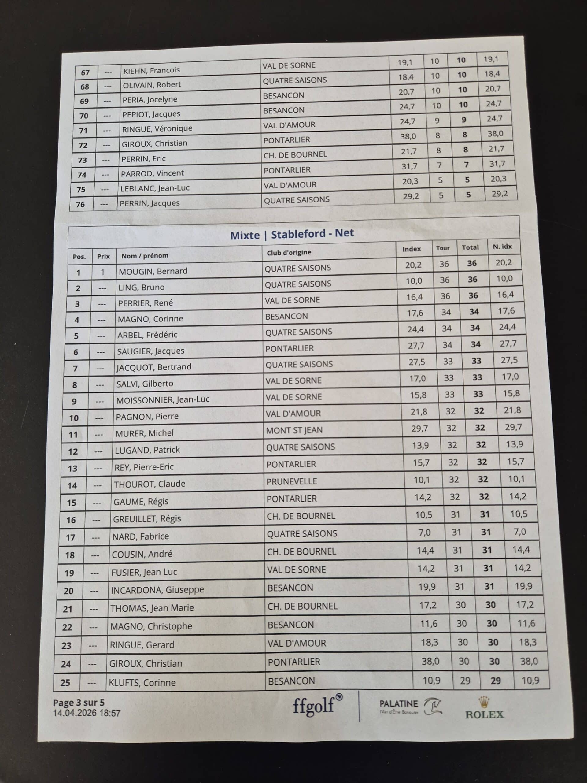 En Net 1° Bernard Mougin (36 pts-meilleur retour), 2° Bruno Ling (36 pts) et 3° René Perrier (36 pts)